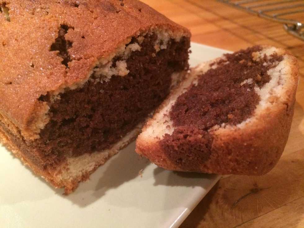 Add a bottom layer of the vanilla batter and then all if the chocolate layer and finally the rest of the vanilla batter.
