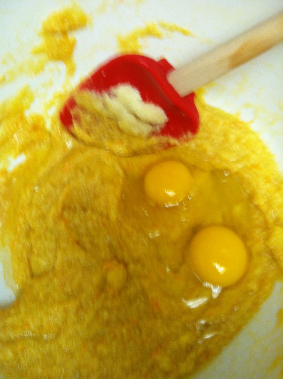 Cream butter and sugar till smooth. Add vanilla and orange zest to creamed mixture. Add eggs in one at a time.