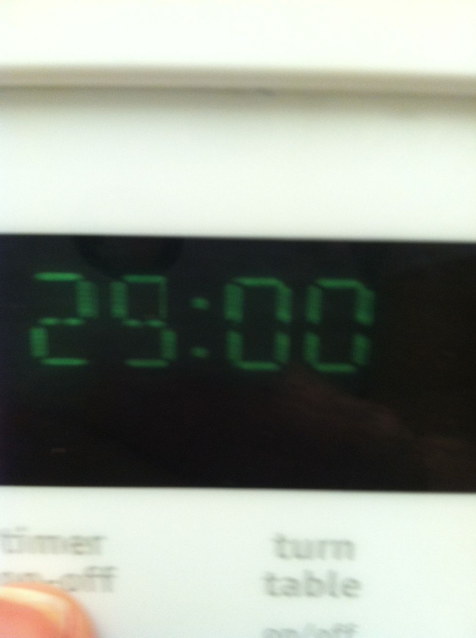 Bake at 350 for 25 mins. Poke with toothpick to make sure it's baked all the way through.