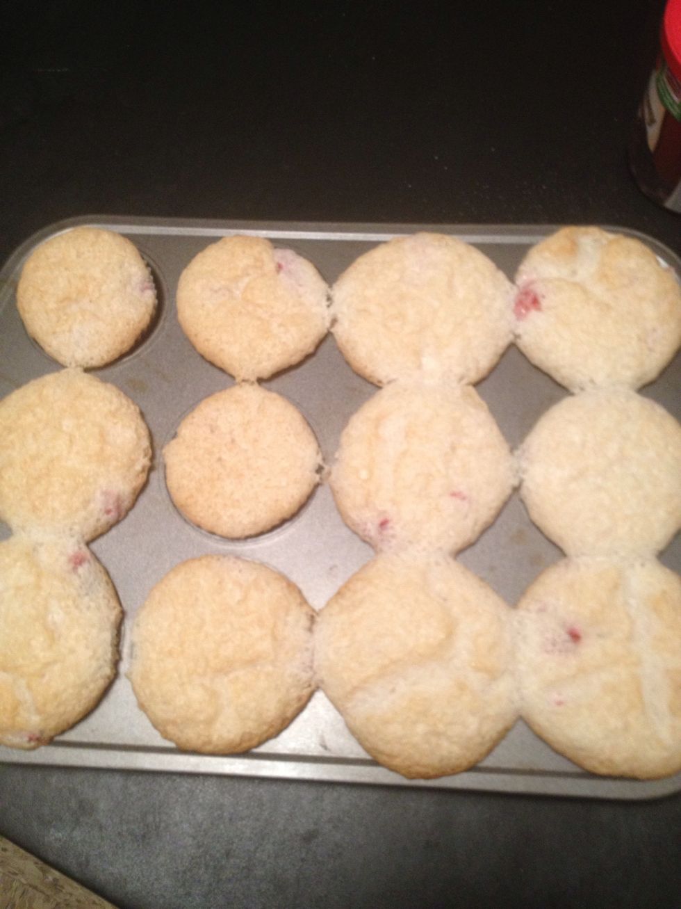 They rose up a lot more than I expected. Take them out to cool. I couldn't help to try them while still warm😊. These ended up not needing frosting.