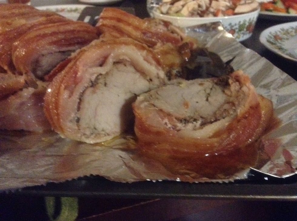 Cooked at 350* for 45 minutes I always use the meat thermometer to make sure it reaches 165*