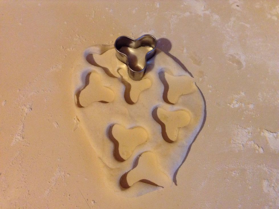 Ingredients: 1 banana, sugar, butter, cinamon, 1 egg, puff paste, chocolate, controy ( Orange liquor, Cutters, kitchen roll, happines, creativity.......