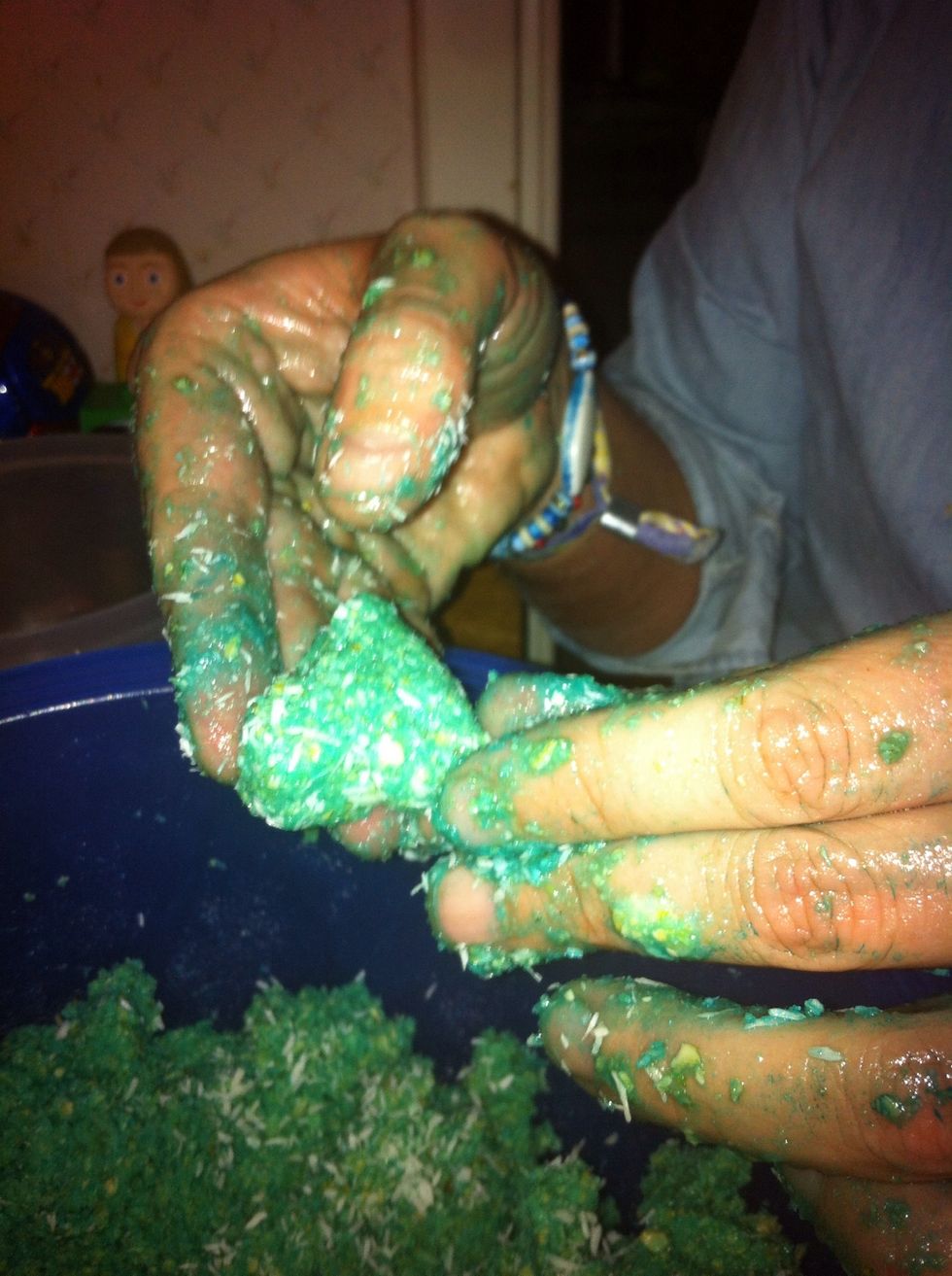 Lite klabbigt, men det går lätt att forma hjärtana.