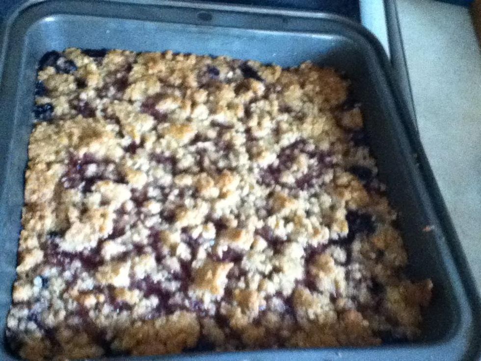Sprinkle mixture overtop of blueberries.