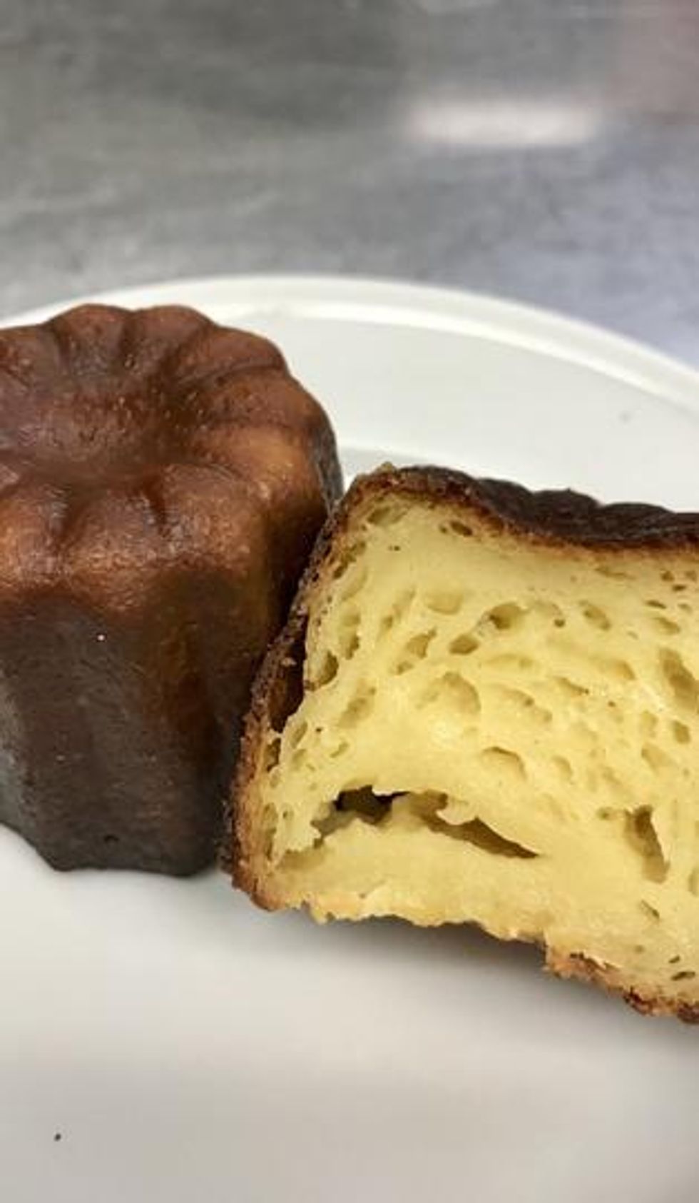 Caneles will have a caramelized outer crust with a tender custard center.