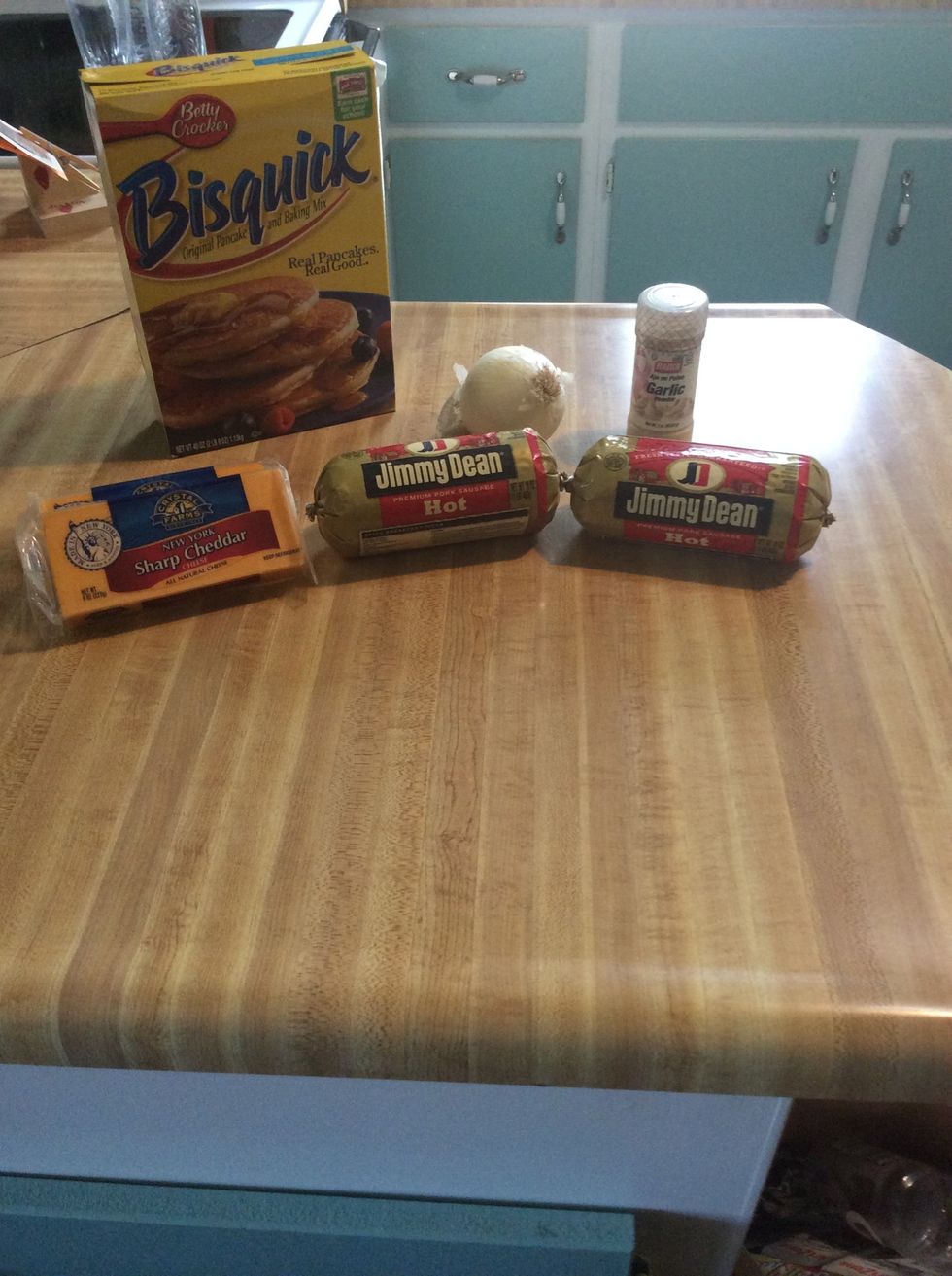 Continue to add in the biscuit mix, cheese, and onion until you run out.