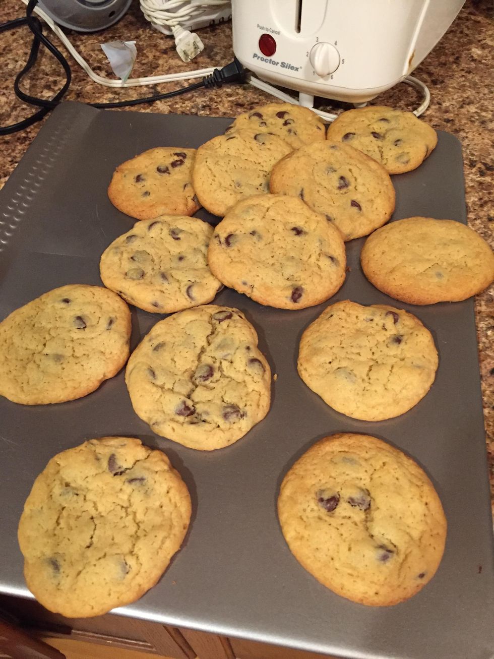 Add in the vanilla, baking soda, flour, and chocolate chips until all of the ingredients are well mixed together.