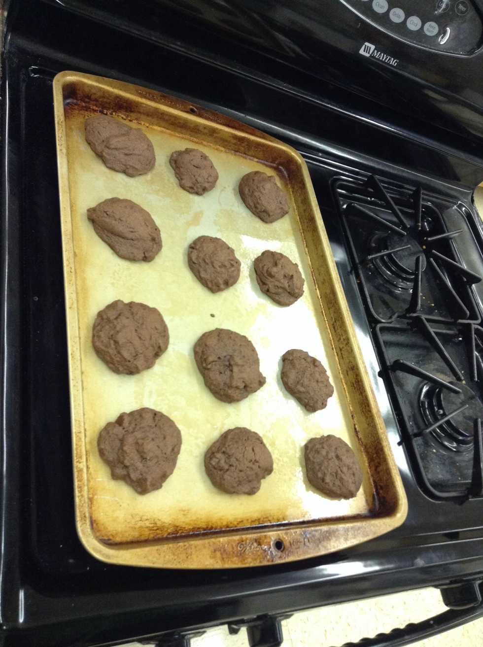Shape dough into small balls and put them on the baking sheets.