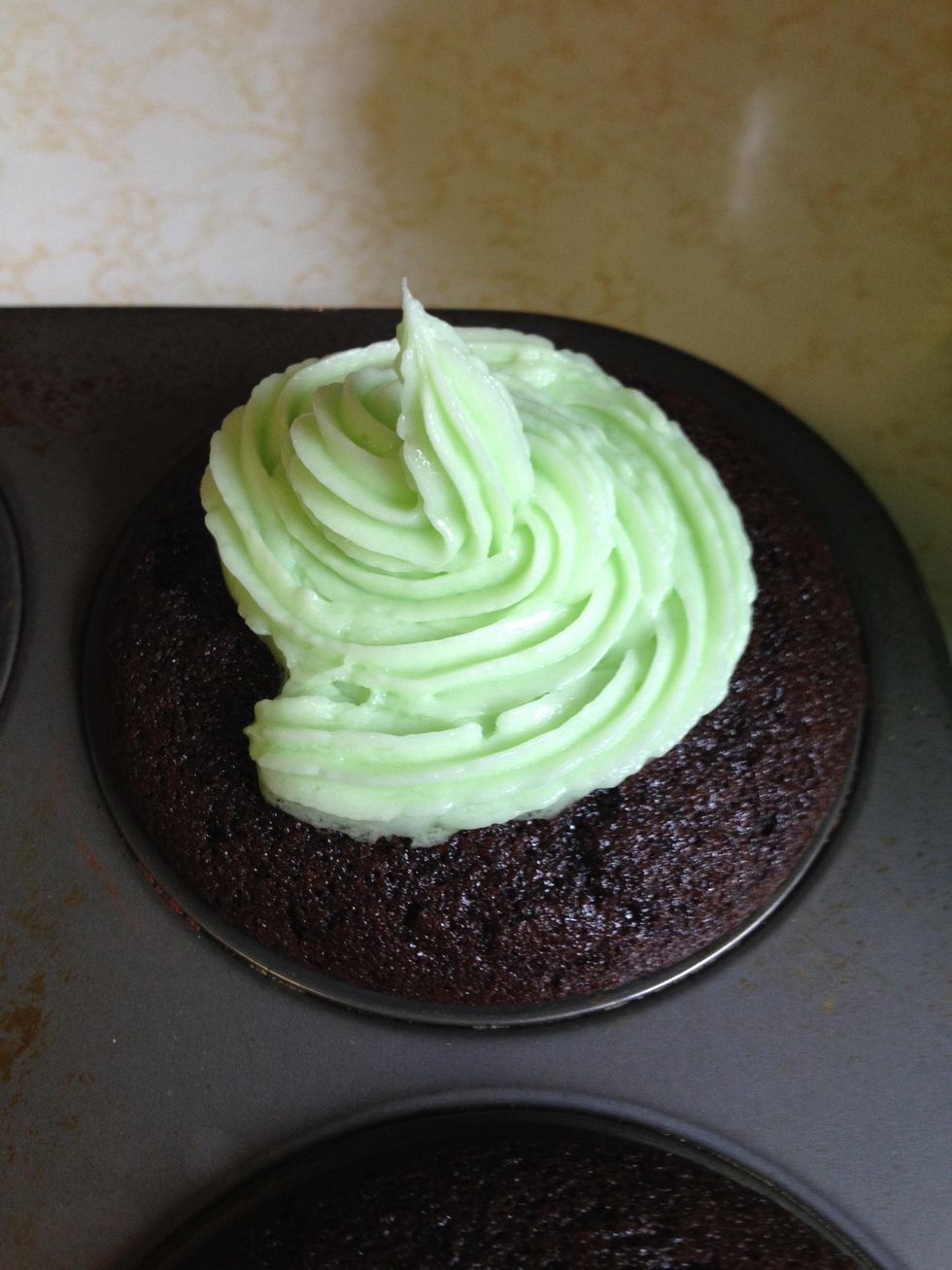 Pipe the icing onto the cupcakes after they're completely cool, or the icing will melt.