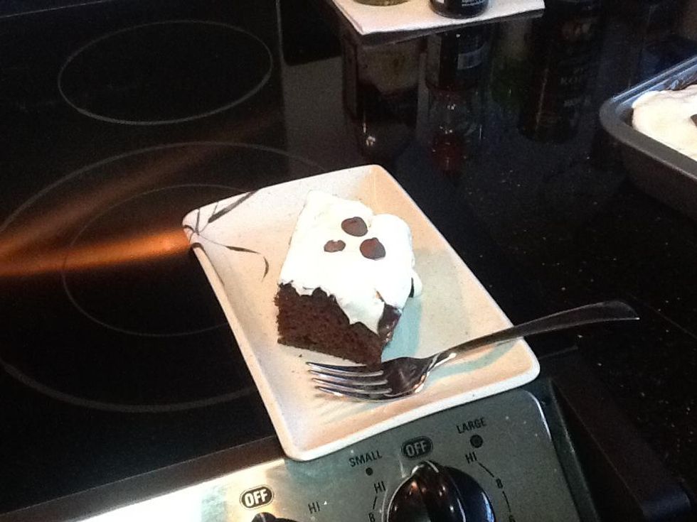 Poke cake every half inch with the handle of spoon after it has cooled.