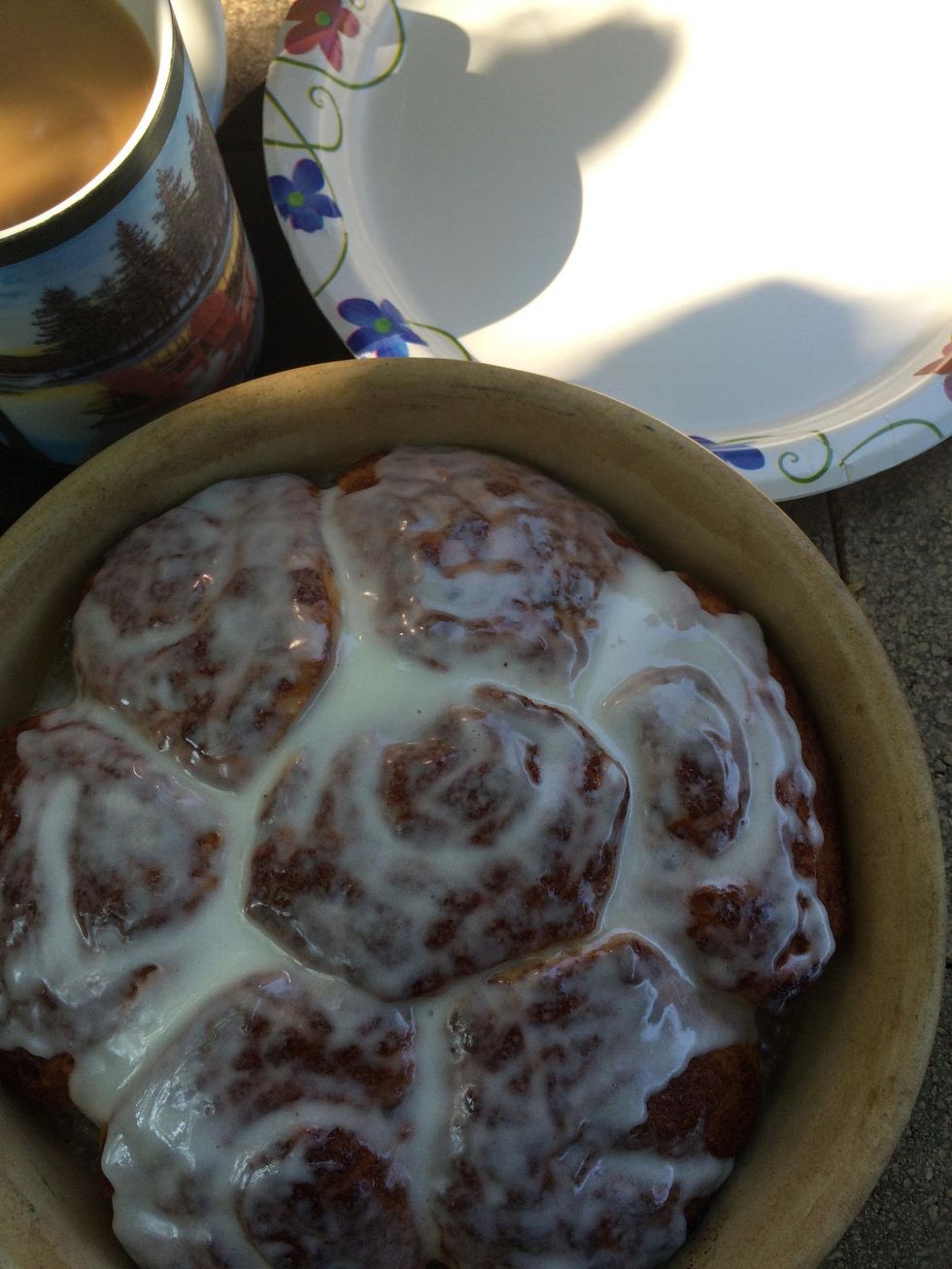 Have a great camping day started with fresh baked cinnamon rolls. Don't forget the camp coffee. Enjoy!