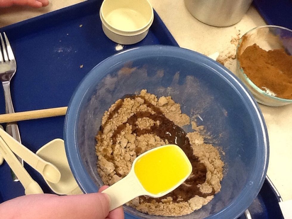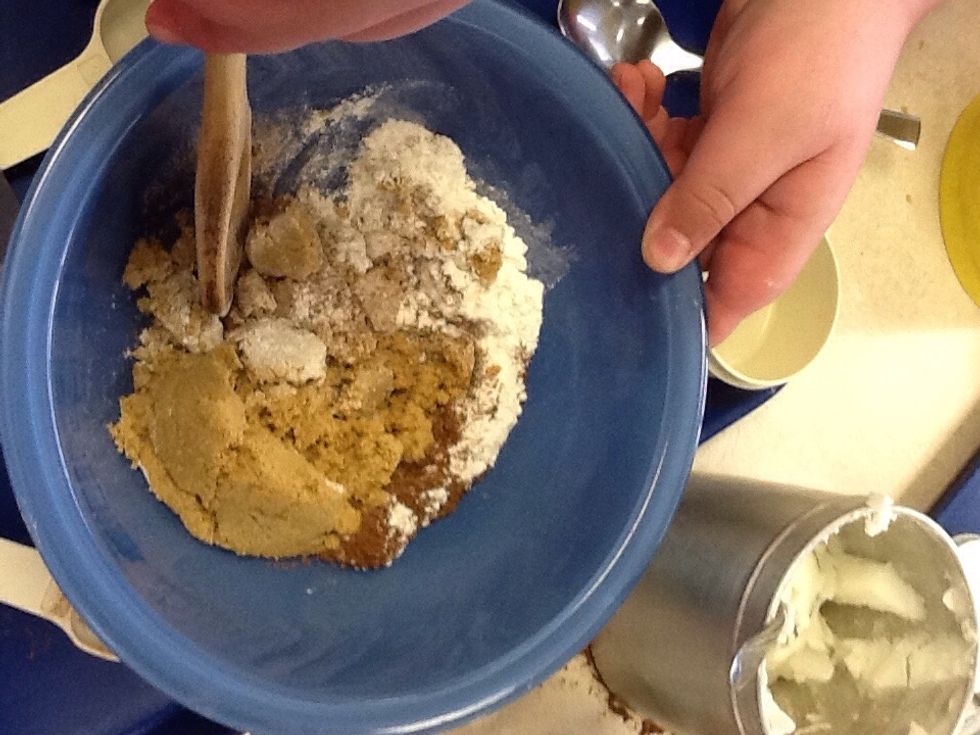 Make spicy topping: Combine:brown sugar, 30 mL flour, cinnamon. Once combined add melted butter.