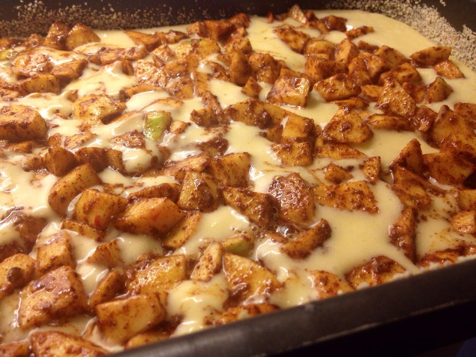 Add the liquor and allow the apples to soak while you prepare the batter.