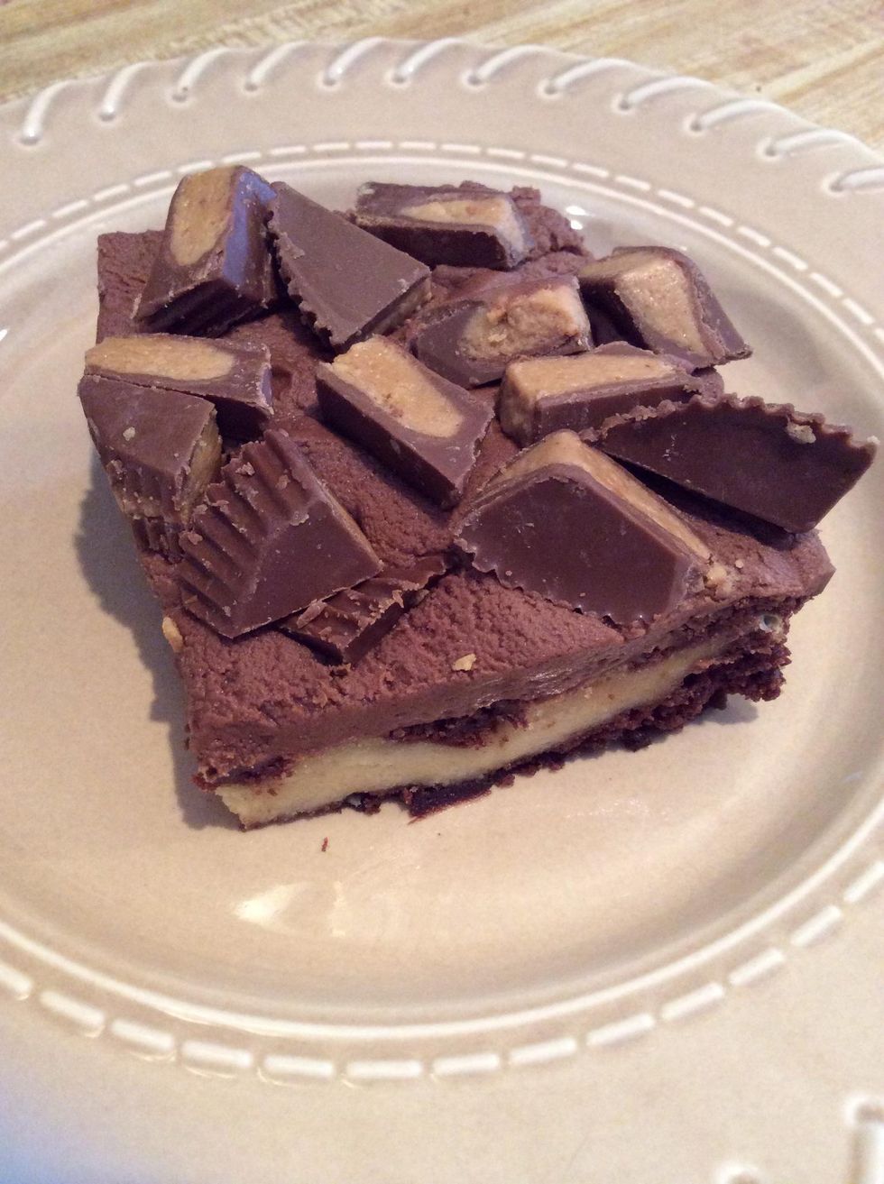 Once the brownies are cooled off frost them and add your cut up Reese chunks. Serve with ice cream, milk or coffee. ENJOY❤️
