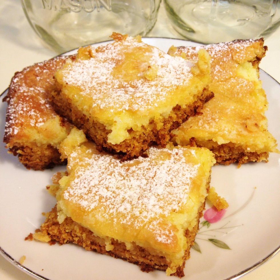 Makes about 30 pieces of gooey butter cake!