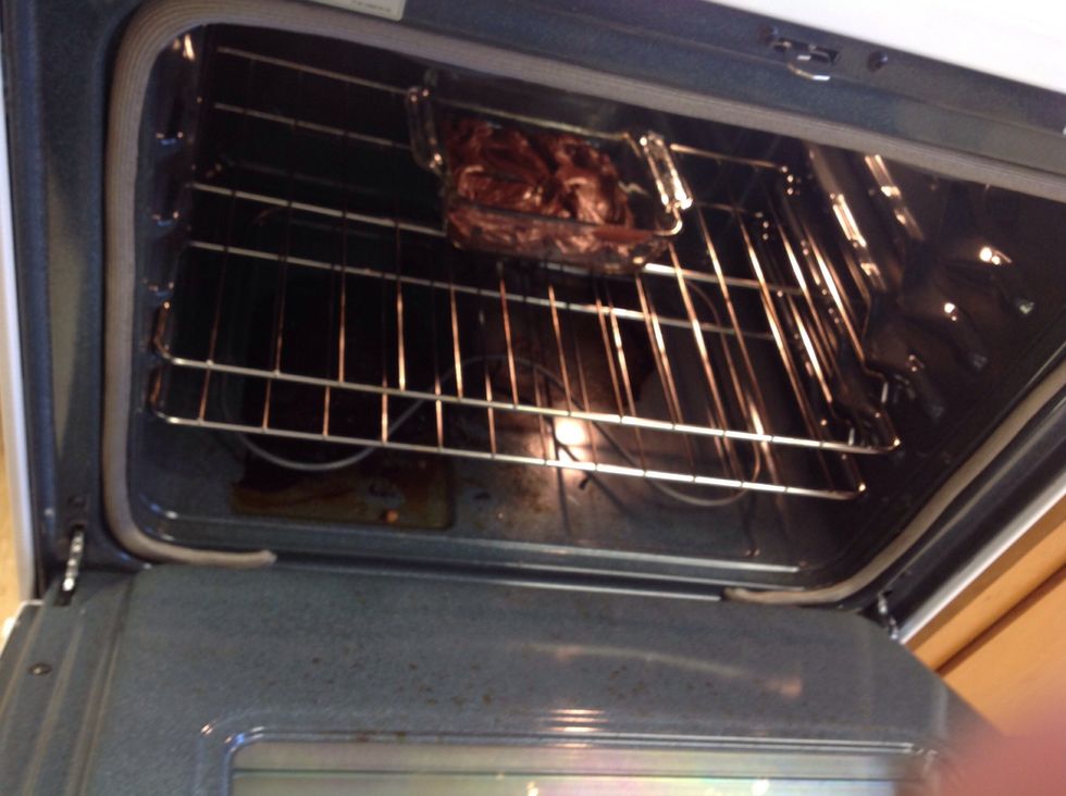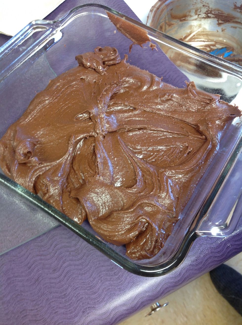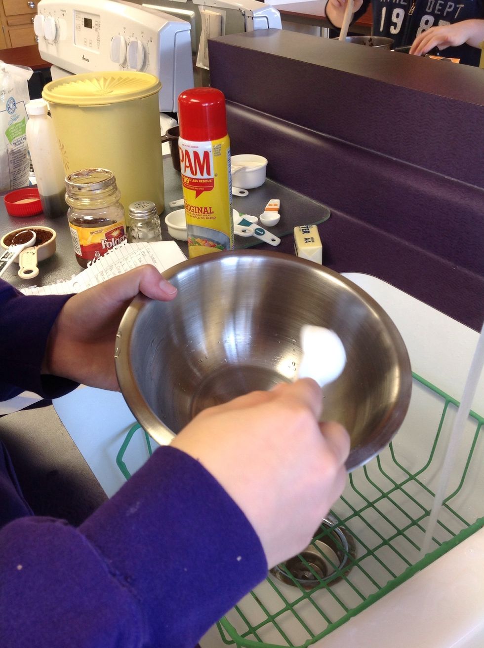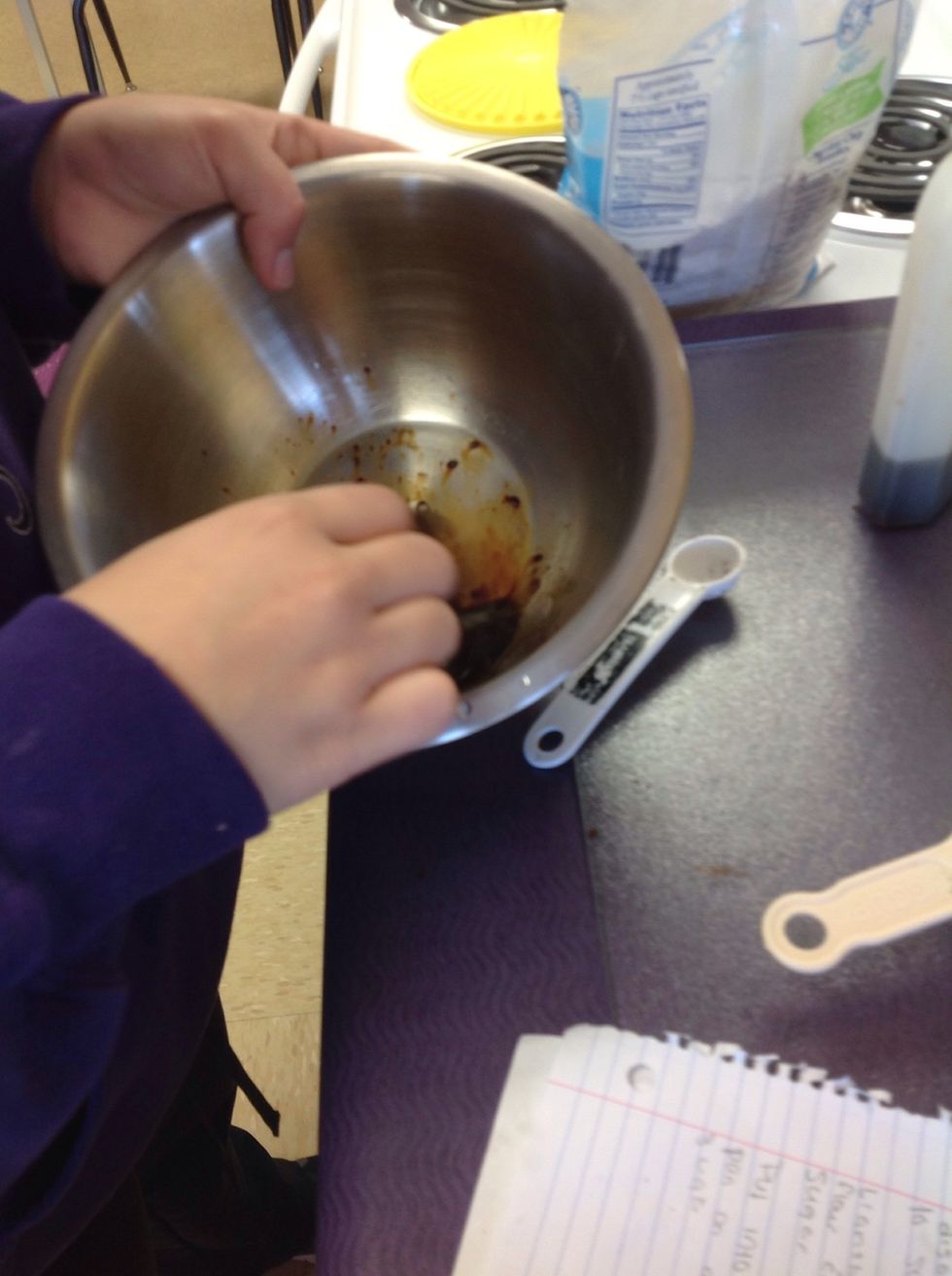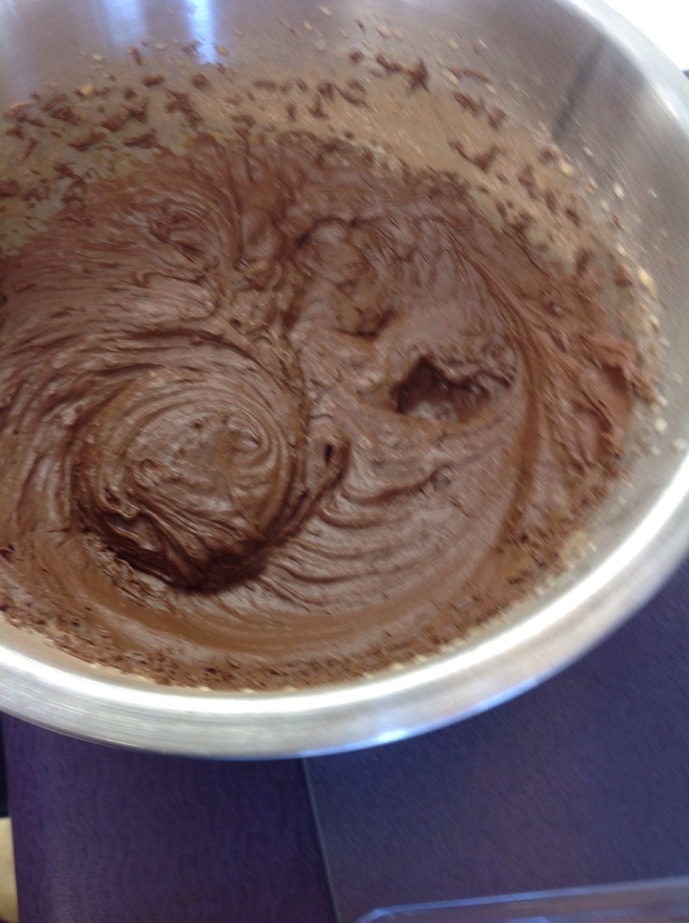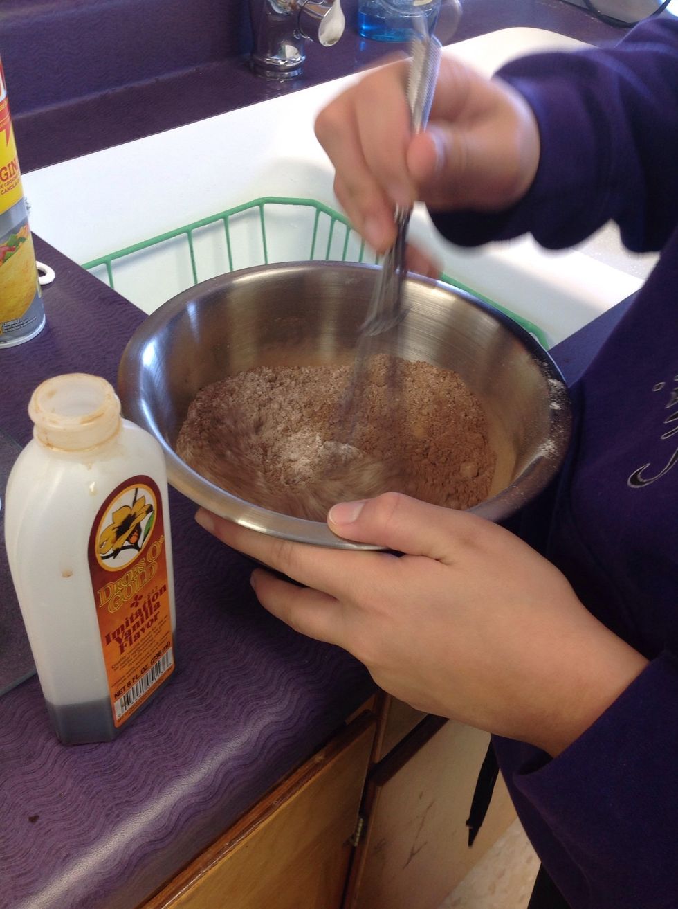 1cup sugar 2 eggs 1T hot water 2t instant coffee granuals 1/4 cup melted butter 1t vanilla 1 cup flour 2/3 unsweetened cocoa 1/4t salt Cooking spray Powdered sugar