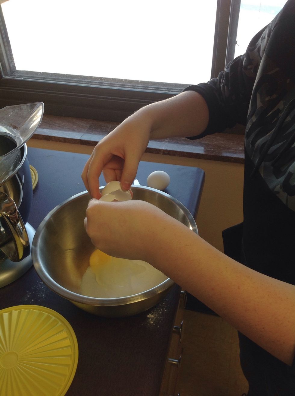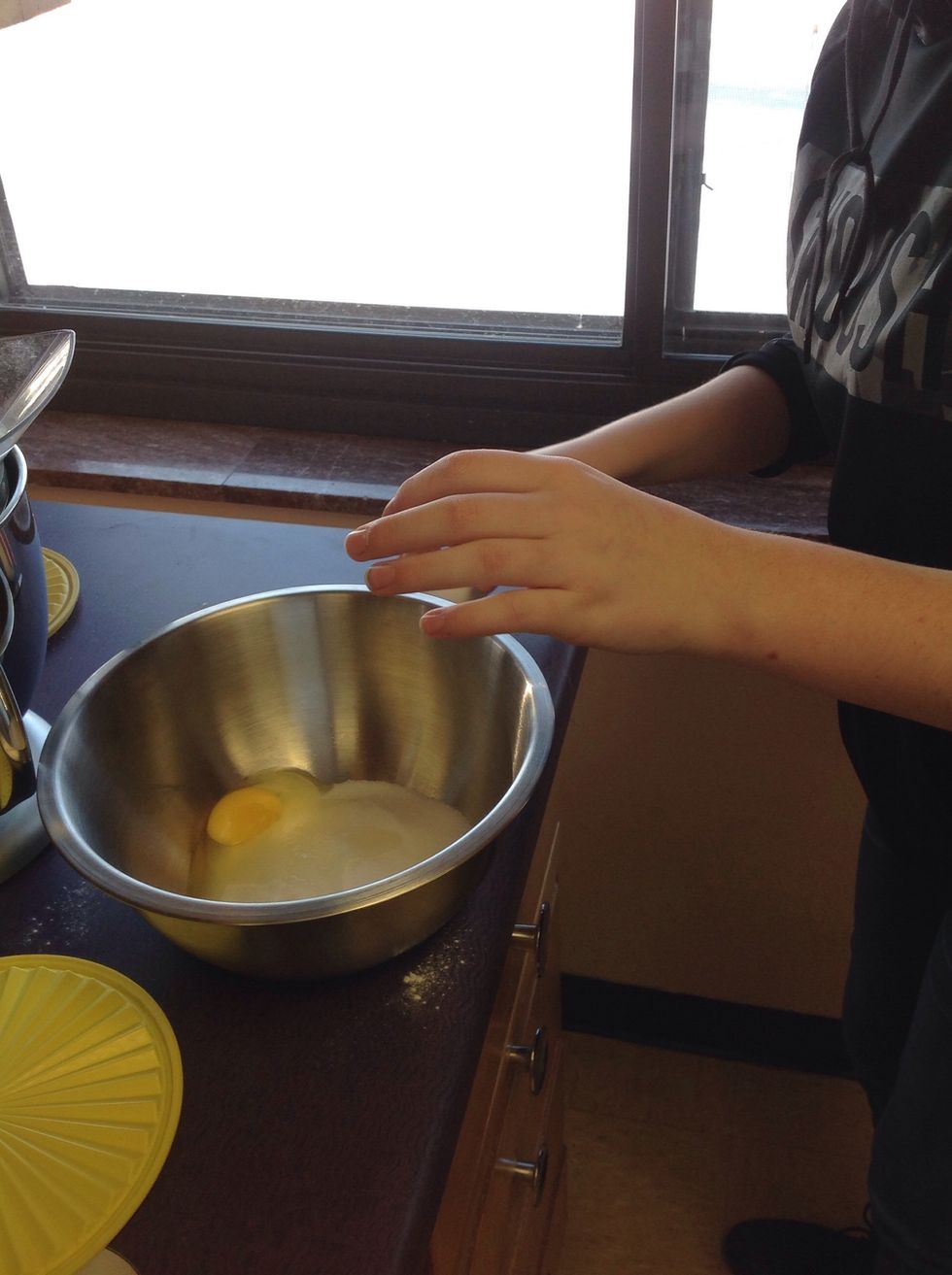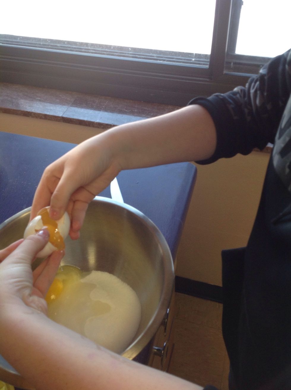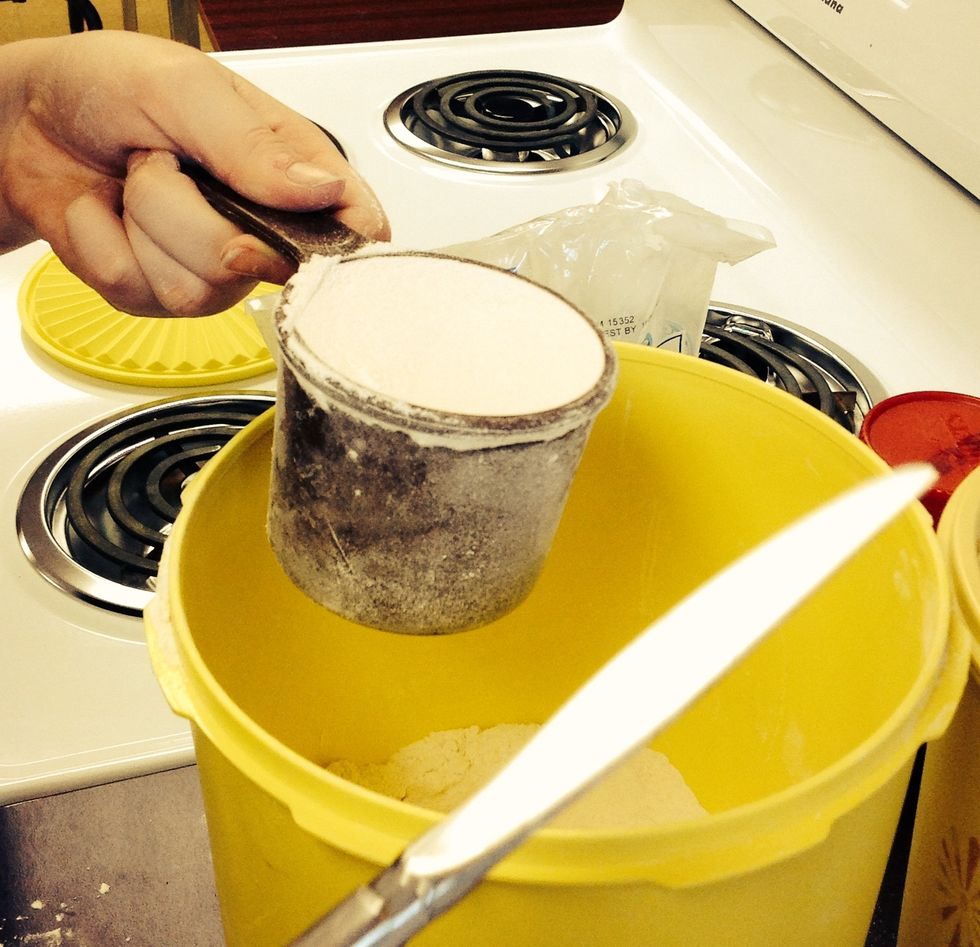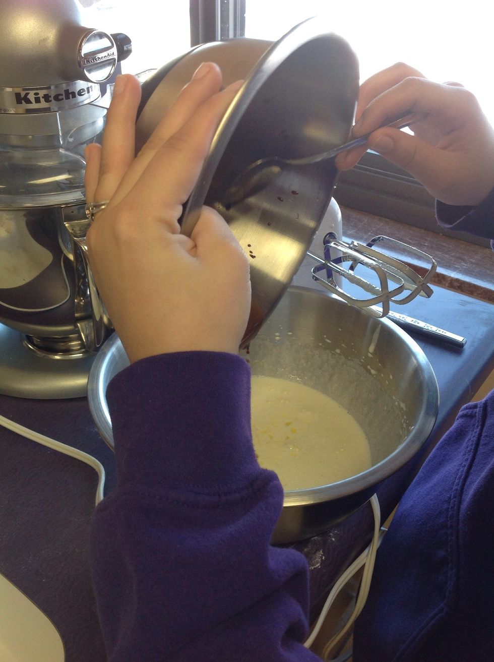 1cup sugar 2 eggs 1T hot water 2t instant coffee granuals 1/4 cup melted butter 1t vanilla 1 cup flour 2/3 unsweetened cocoa 1/4t salt Cooking spray Powdered sugar