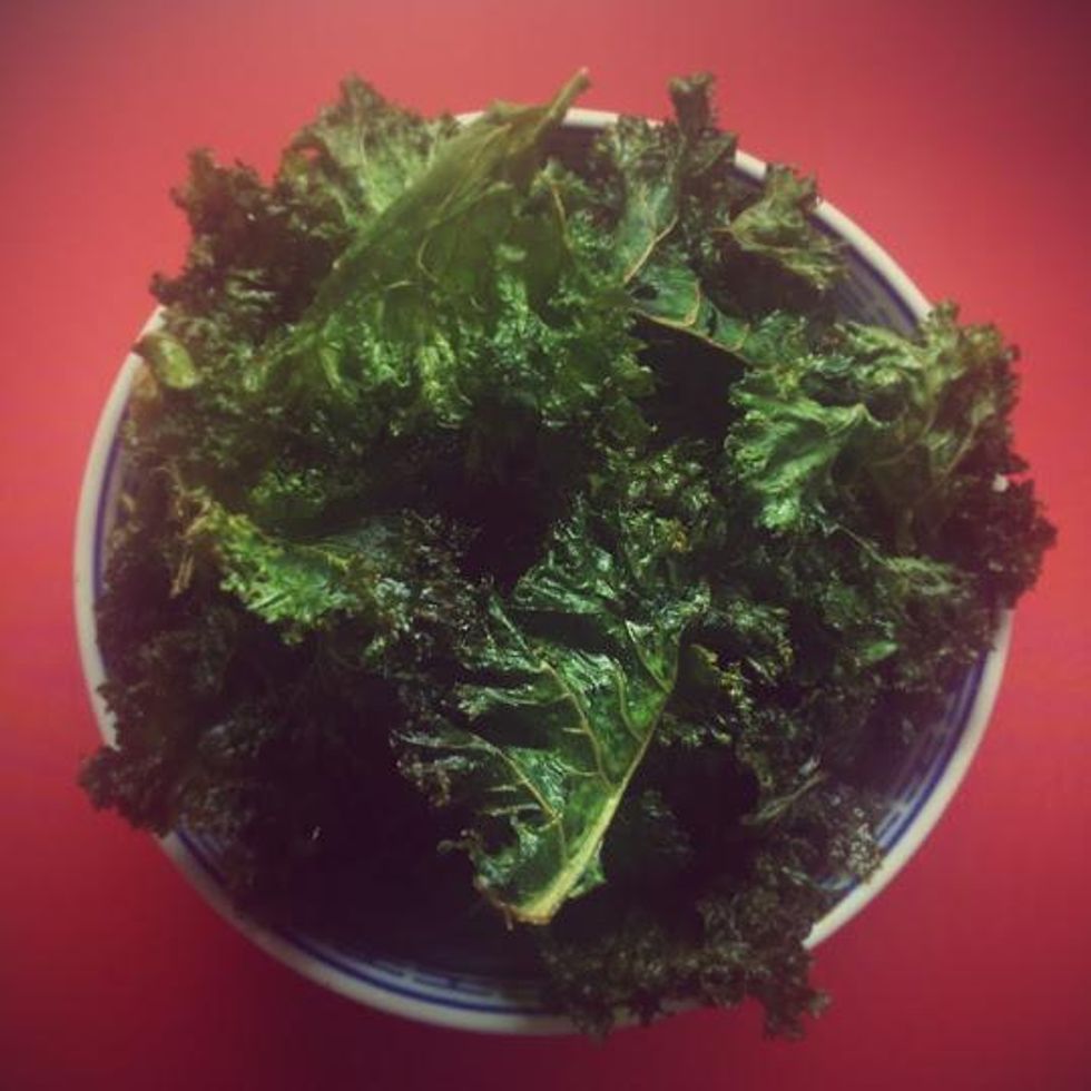 Spread the kale onto a baking tray in a *single* layer. Squishing is okay but do not stack. Use a Silpat or parchment paper so you don't have to scrap off baked-on kale bits from your tray.