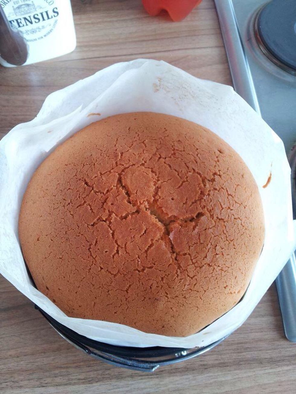 Put a tray directly above your cake tin to protect it from too intense heat and to stop the top cooking too fast which leads to that typical big cracked dome Madeira is famous for.
