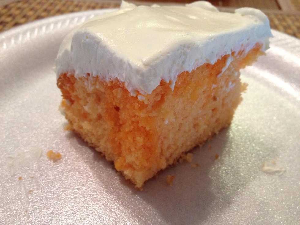 Bake cake according to box directions. After done, take out of oven and poke holes with a fork all over.