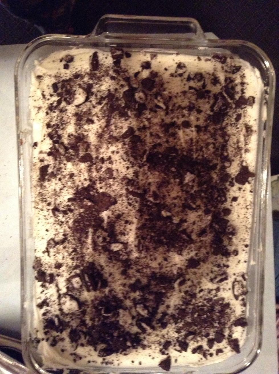 I made this for a foods presentation. I found it out of my mom's one cookbook. I didn't use actual Oreos for this...but it will all be the same. :P