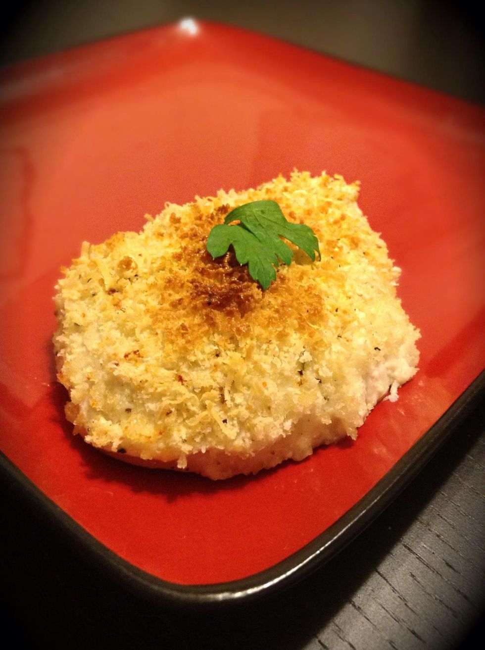The simplest and most savory way to dress up chicken breasts for a quick supper is just to top them with mayonnaise, sprinkle with Parmesan cheese and bread crumbs, and bake!