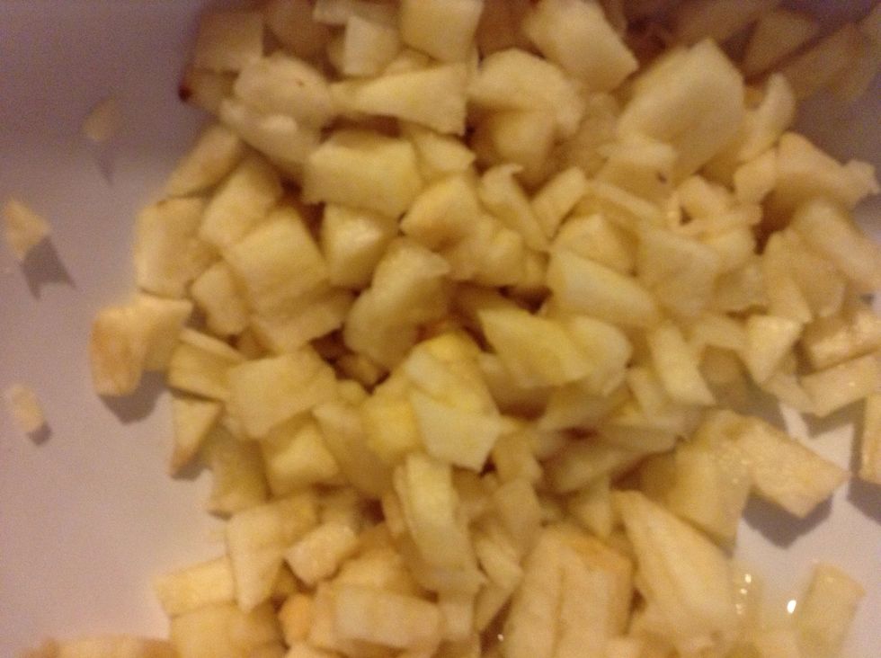 Add the pear, then add 5 table spoon sugar, when get golden and the pear is soft turn off