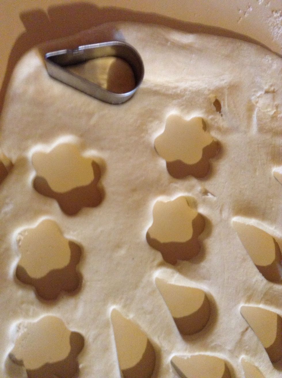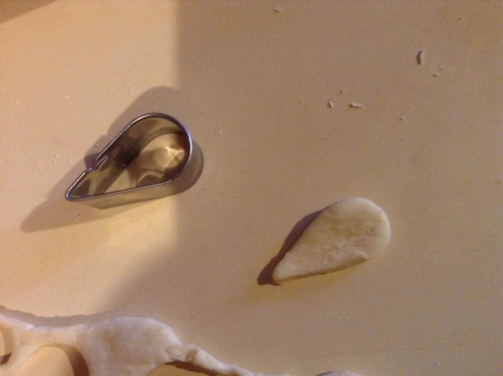 Cinamon, butter, pears, sugar, 1 egg, flour (only for work in the table), cardamom, puff paste, a pan, mini coockie cutters, kitchen brush, kitchen roll,