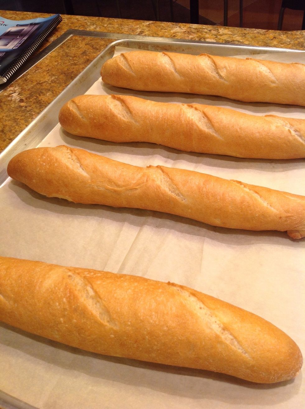 Baguettes will be golden brown.