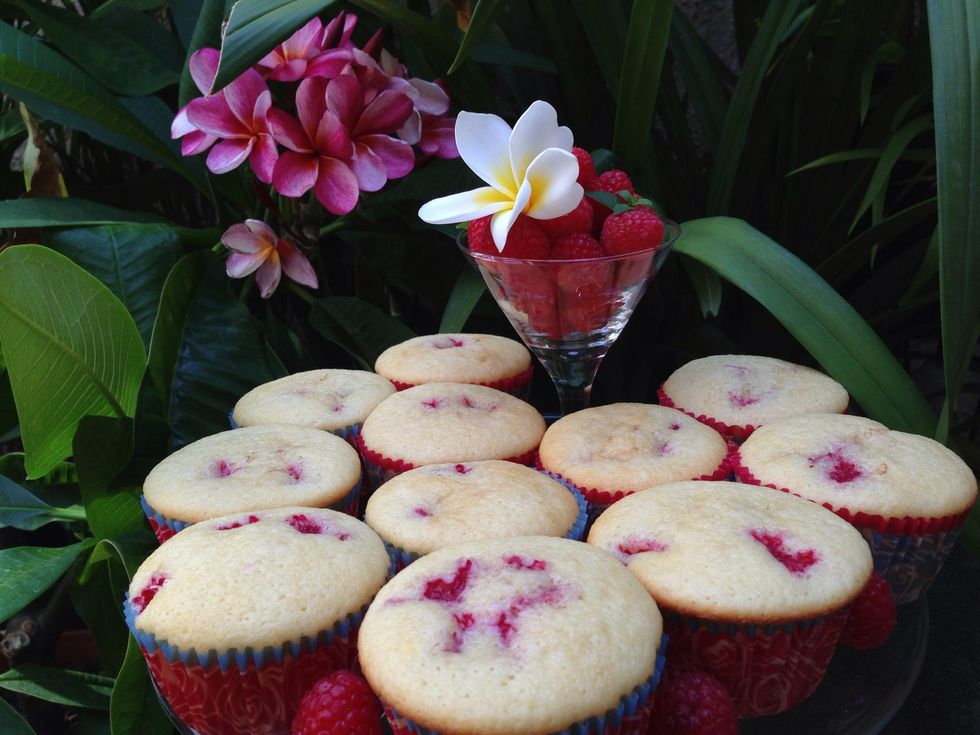 Fill almost to the top and place a whole rasberry in the middle and break apart another one to go on the edges.