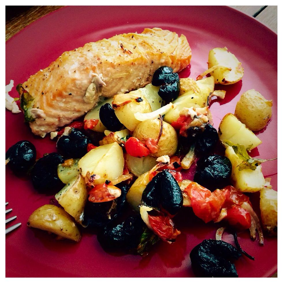 Add tomatoes, potatoes, pitted olives and parsley leaves