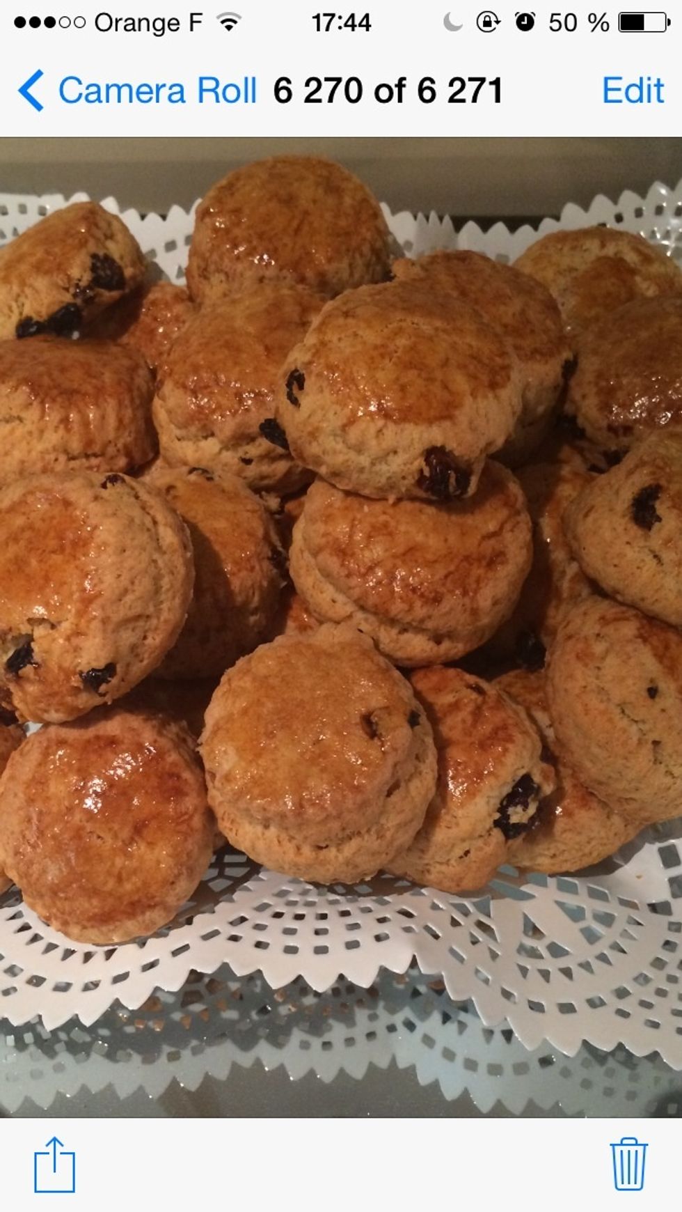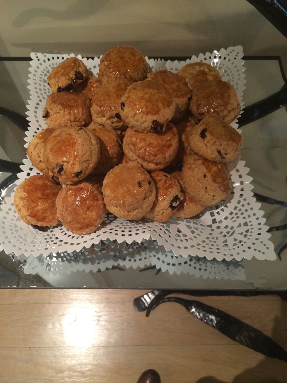I used a cutter 4.5 cm. and I got almost 40 scones. Enough for a big tea party or a brunch