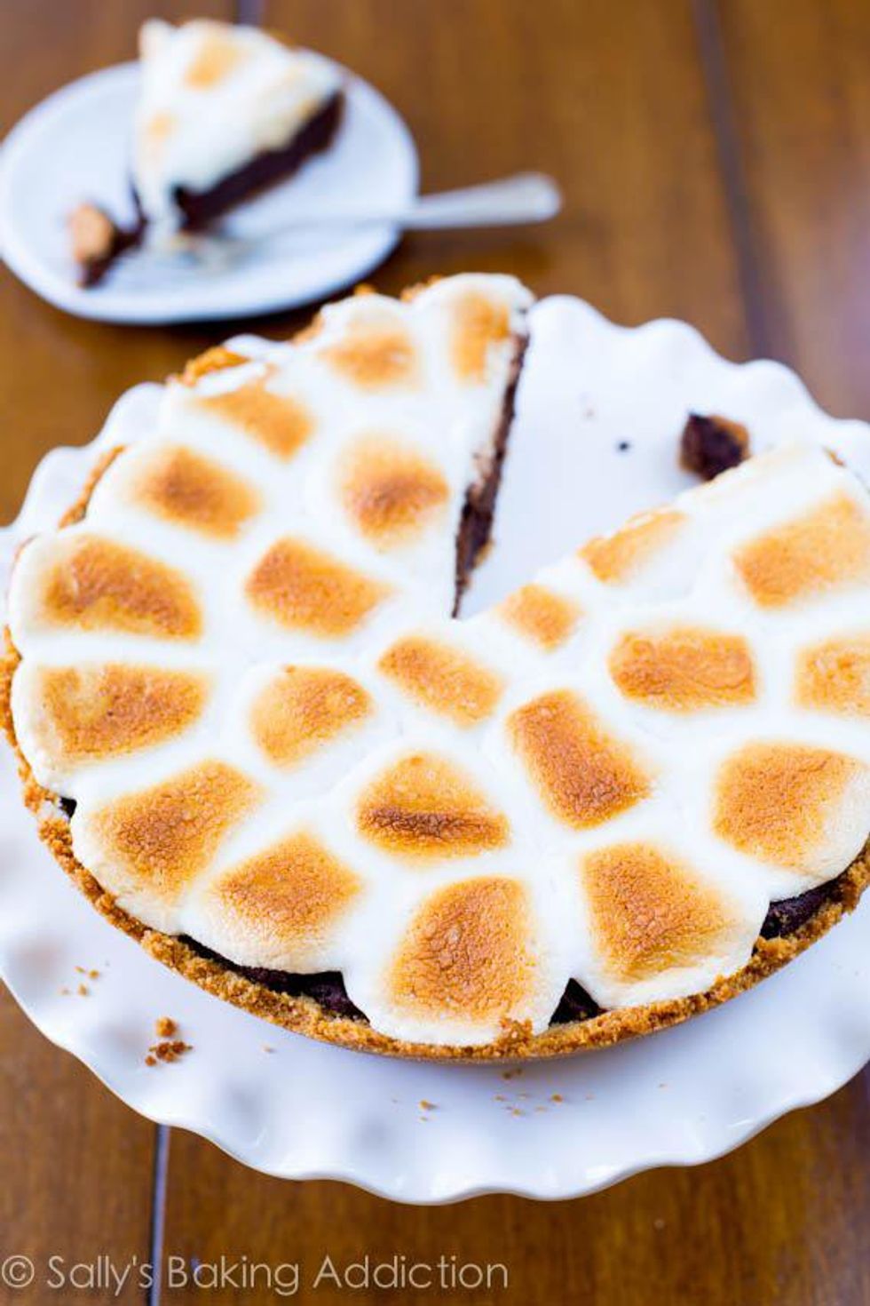 Apply marshmallows around the top of the pie