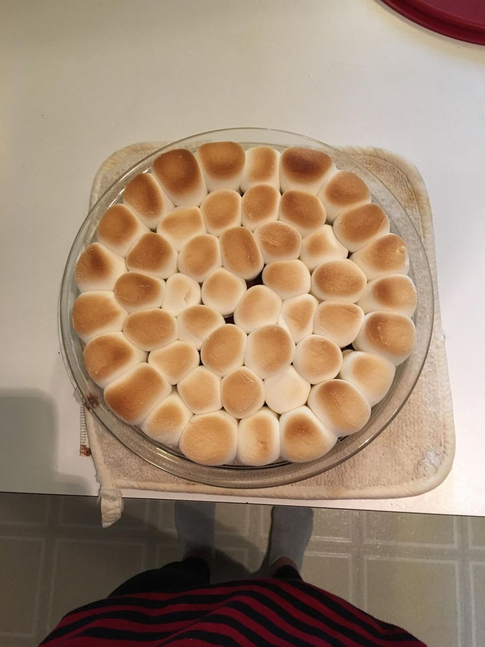 Use an entire bag of marshmallows to layer on top of the chocolate. Squish as many marshmallows as you can into the pan.