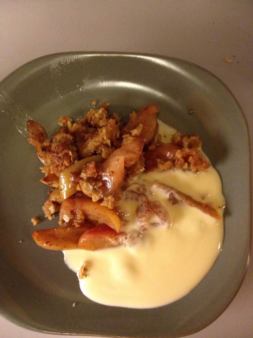 Cover the apples with the topping. Put it in the oven (225 Celsius) for about 20 minutes.