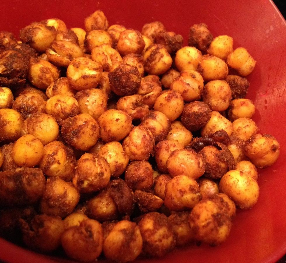 Drain your can of chickpeas, and pat them dry with some paper towels (important)