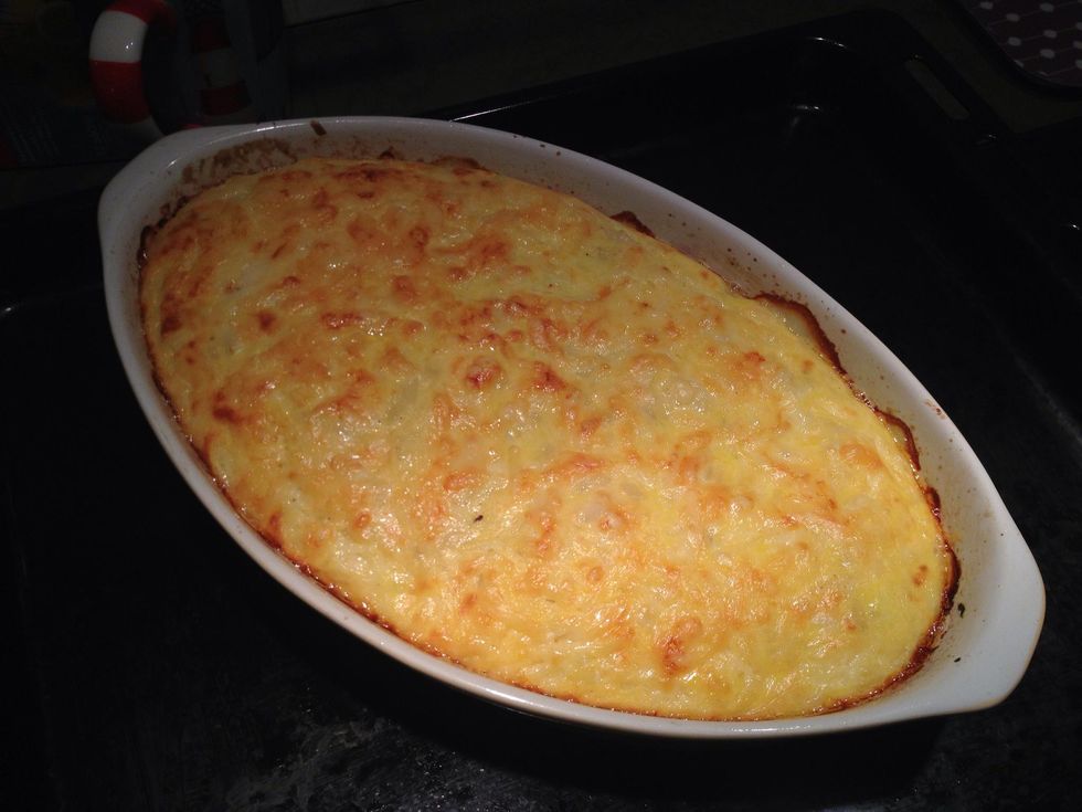 Put the mixture in the baking pot (and cover with rest of cheese) and bake for cca 20 minutes at 180 degrees centigrade in oven