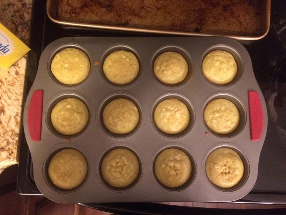 Next, pour the batter into a pan. Fill each cup 3/4 full.