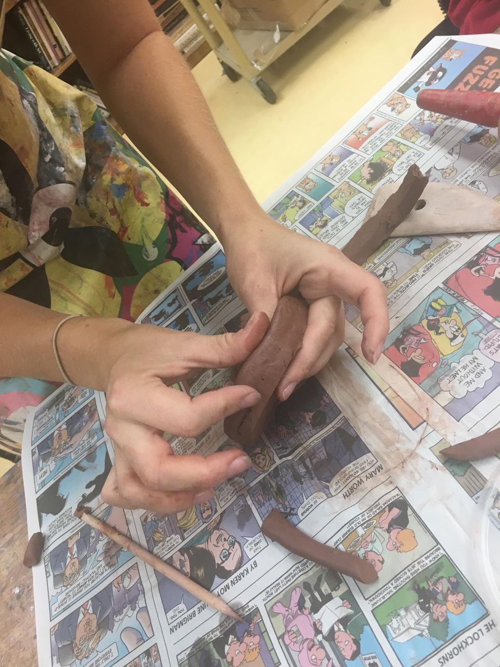 To make a coil, start with a ball of clay and start rubbing back and forth between palms