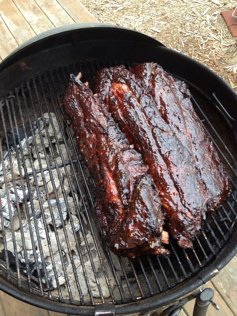 Glaze ribs with sauce. Keep on grill for 15-20 minutes to carmelize.