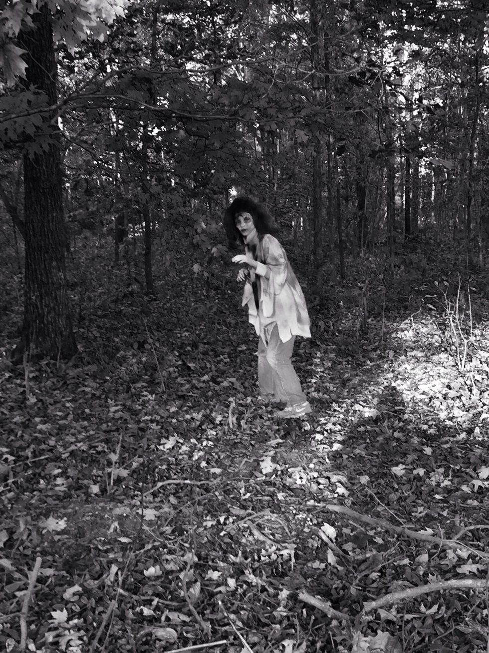 Zombie blood and black lips. Yep, creepy enough. Dear Daughter is transformed!