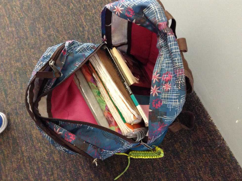 Look through everything in the pockets (ex. hand sanitizer, extra pens, dictionary...) and decide what you need. Then neatly put all of the needed things back in your backpack.