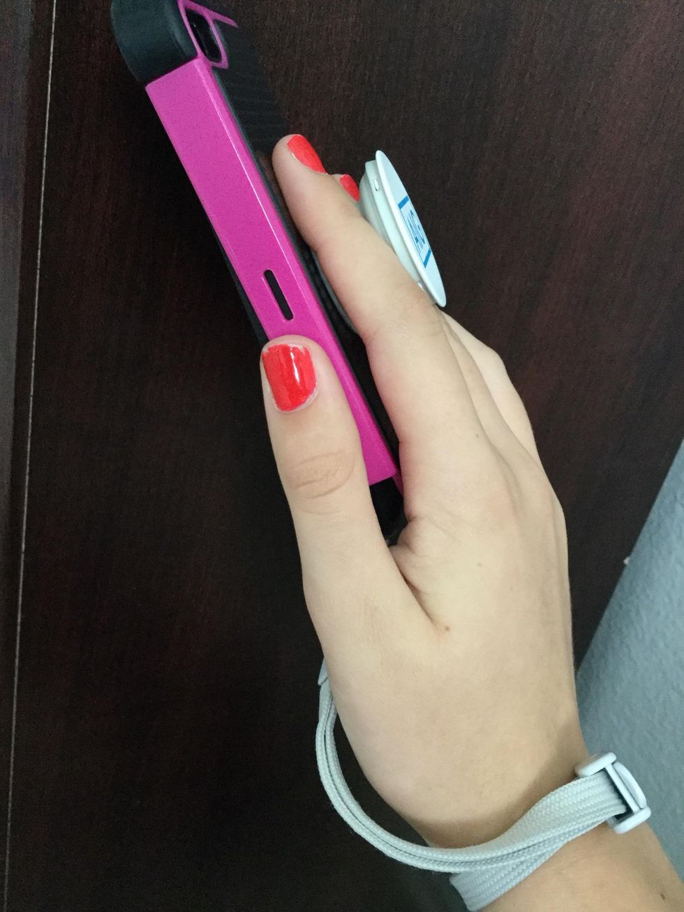 Secure the strap to your wrist, and you can hold onto the pop socket also.