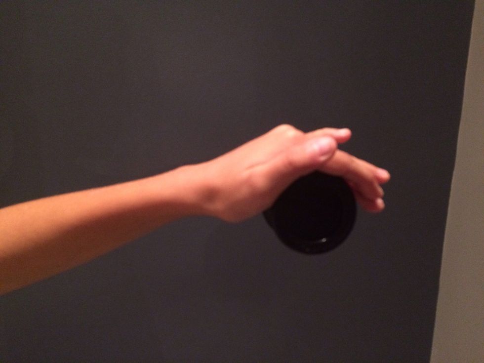 While the yoyo is spinning put your thumb on your right or left hand in the middle of the string
