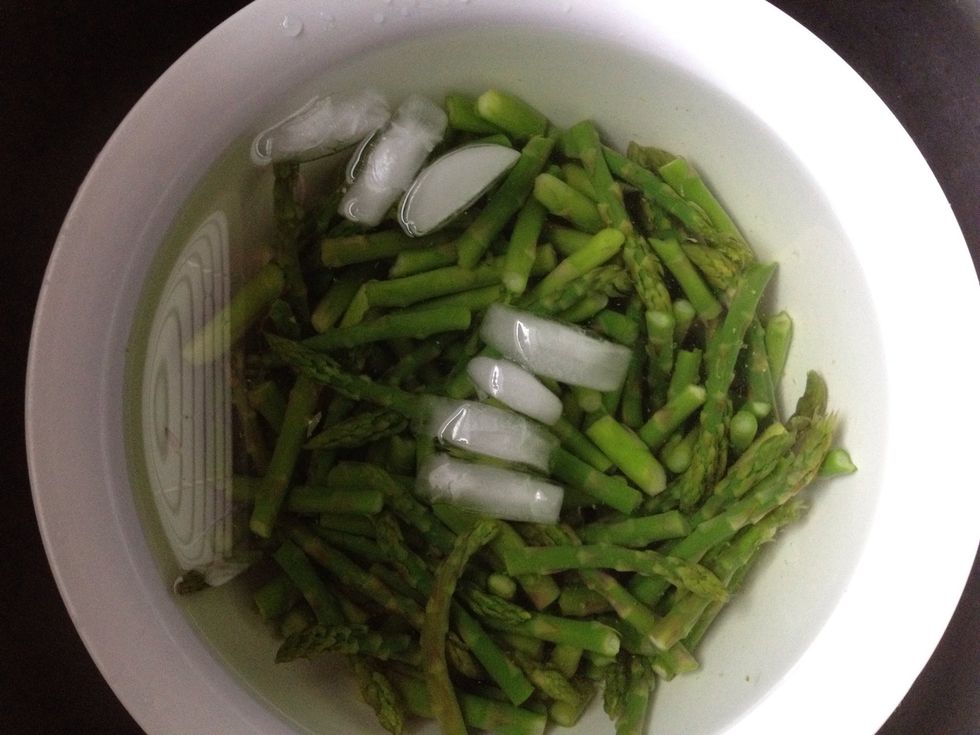 After the 1-2 minute is up, remove from hot water by either poor them out in container or spoon them out. Place in a container with ice cold water. Let sit and cool.