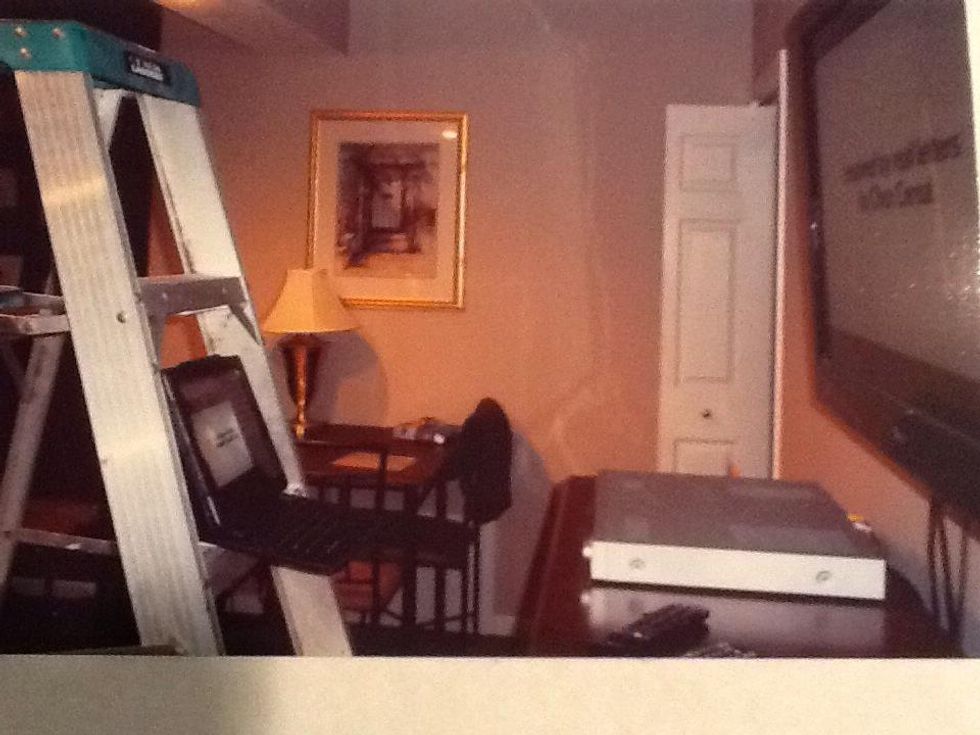 We placed the iPAD on the appropriate ring of the ladder to view the screen on the TV on the wall which you don't fully see in this photo. It's on the right.
