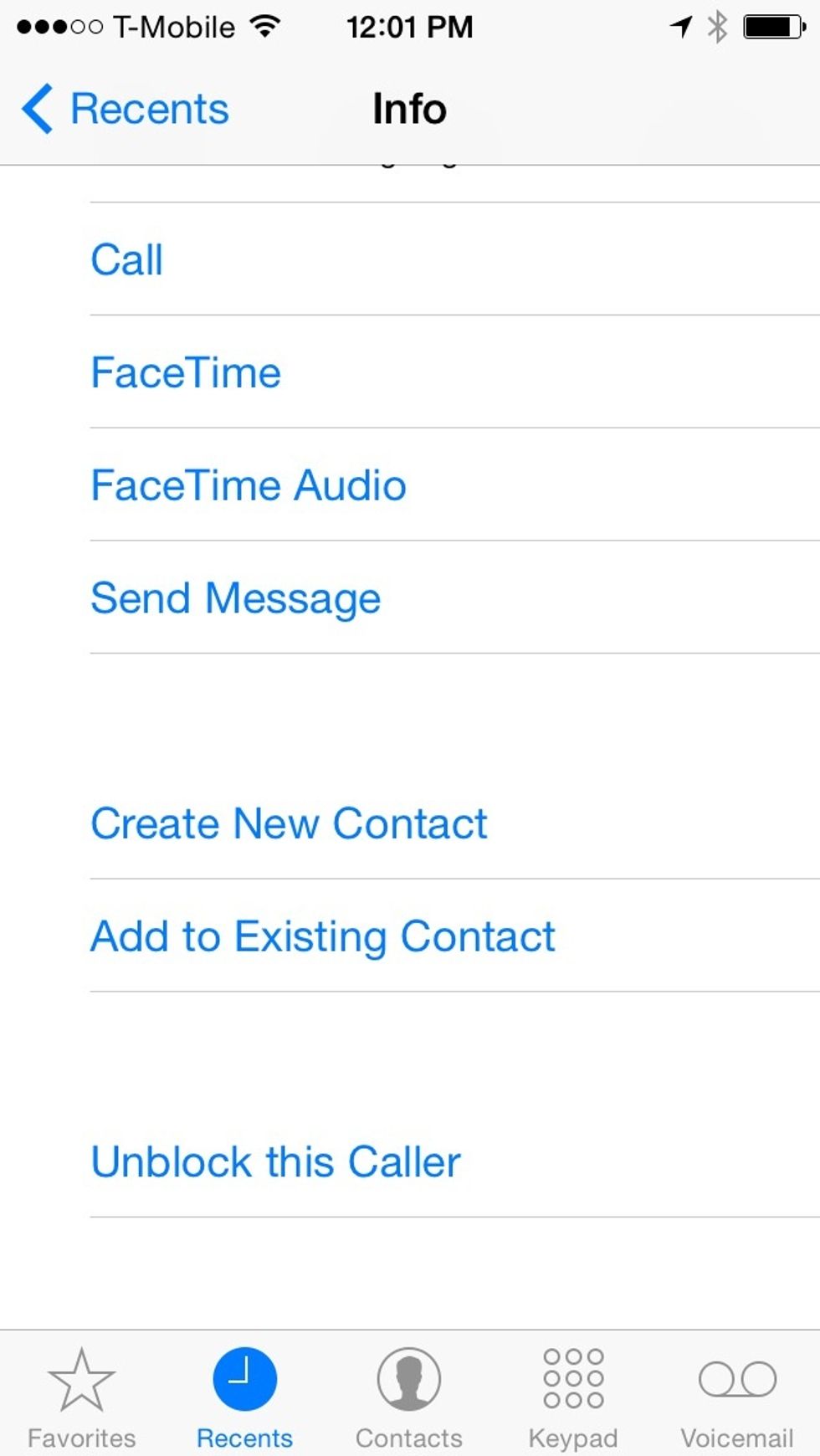 On the recent tab, tap the information icon next to the number you'd like to block.