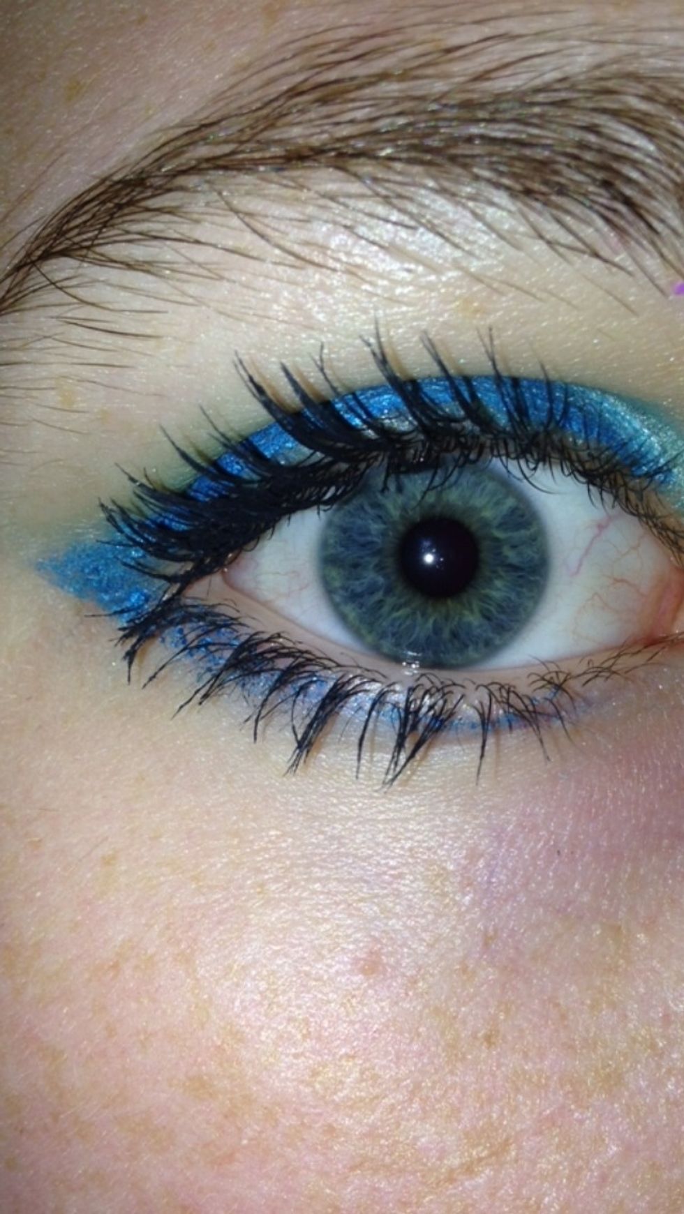 I did the eye makeup only. I would use a sparkly lipstick and blush.