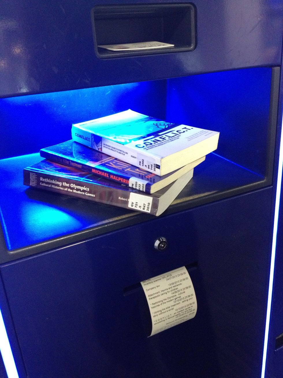 You'll find three issue machines near the main Library entrance - we're using the one with a payment unit, that's the only difference between the machines.
