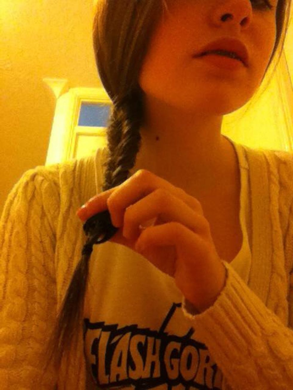 loosen the plait from the top, all the way through to the bottom. if you want a neater looking plait then ignore this step. this can get rid of any mistakes you have made.